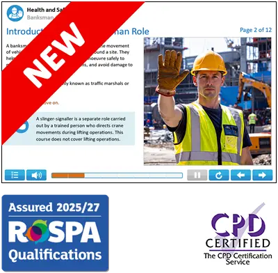 Our Banksman online training course has been assured by the Royal Society for the Prevention of Accidents as providing up-to-date, quality and content-approved training.